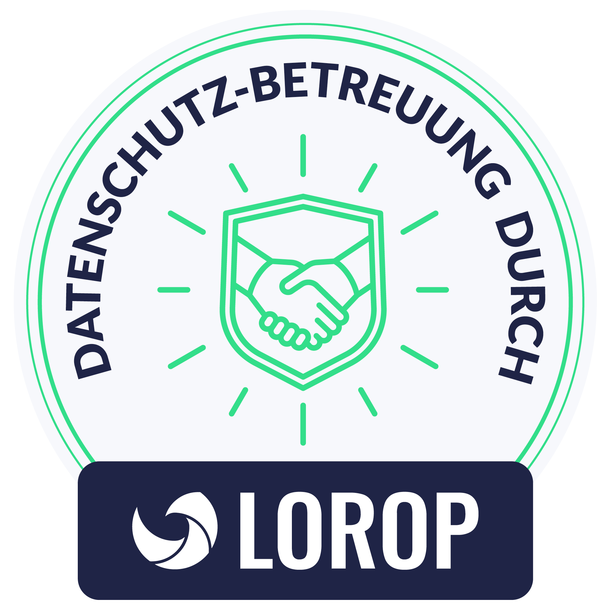 Das LOROP-Siegel „Datenschutz Betreuung durch LOROP“ ist kein Zertifizierungs- oder Prüfsiegel und keine Zertifizierung im Sinne des Art. 42/43 DSGVO. Es dient ausschließlich dazu, die laufende Betreuung durch die LOROP GmbH als externen Datenschutzbeauftragten gem. Art. 39 DSGVO sichtbar zu machen.